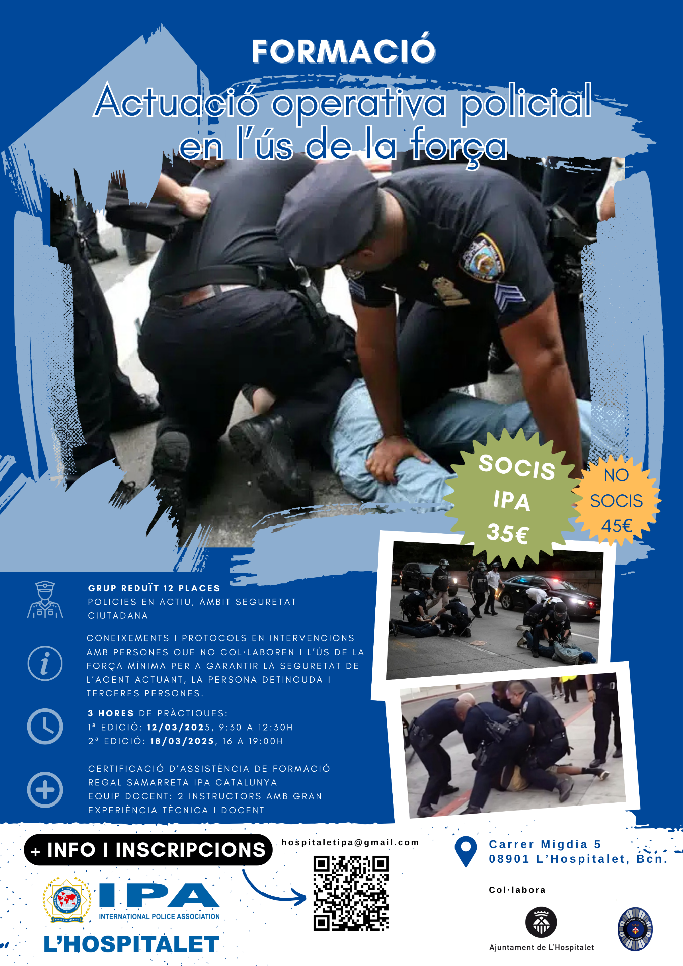 En aquest marc, oferint una acció formativa en forma de píndola monogràfica: "Curs d'ACTUACIÓ OPERATIVA EN L'ÚS DE LA FORÇA"